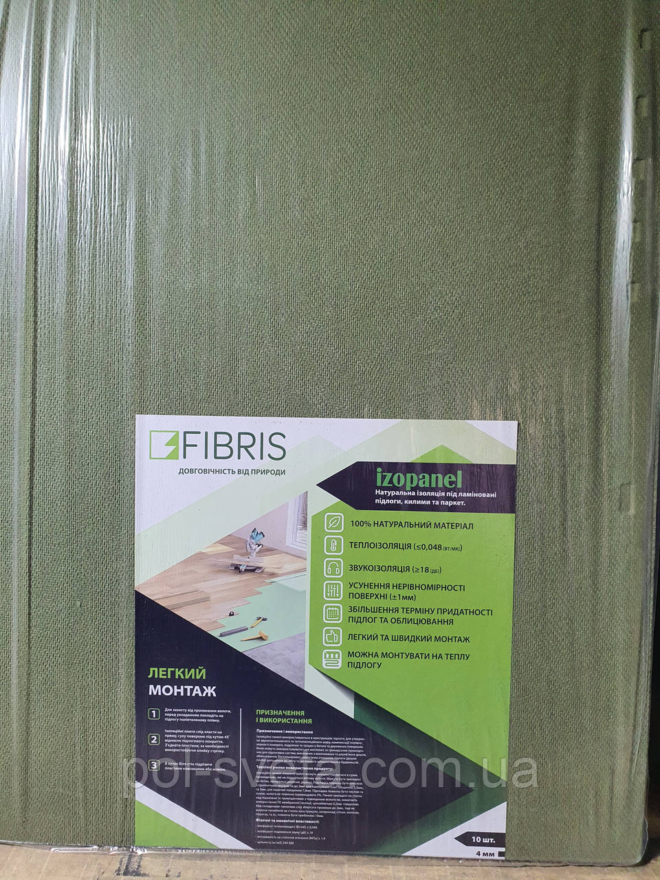 Підкладка під ламінат Fibris Izopanel Тихий хід 4 мм Натуральна підкладка під паркет Звукоізоляційна підкладка