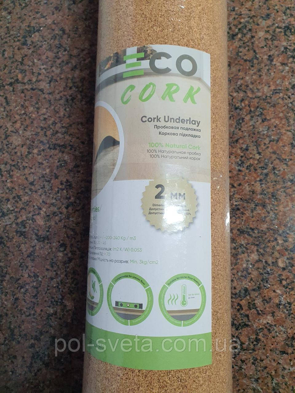 Коркова підкладка Eco Cork 2 мм 1м х 10 м Підкладка під ламінат і паркет Натуральна підкладка