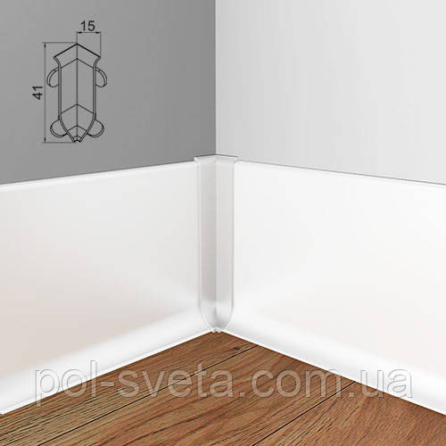 Кут внутрішній на алюмінієвий плінтус 40 мм, ( білий матовий)